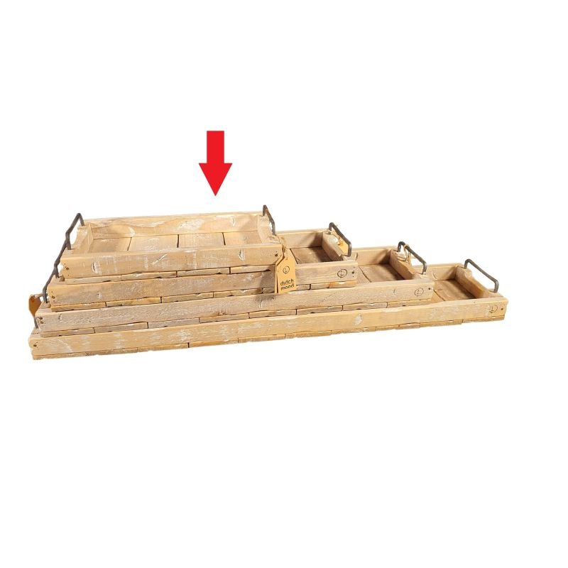 Ons dienblad wordt vaak gekopieerd, dus wees voorzichtig. Niet alleen het uiterlijk is iets anders, maar ook de stevigheid. Wij gebruiken zware spijkers voor een bijzonder stabiel uiterlijk, maar ook om de dienbladen robuuster te maken.