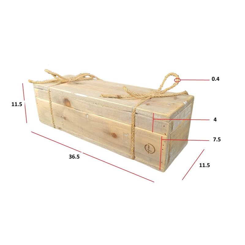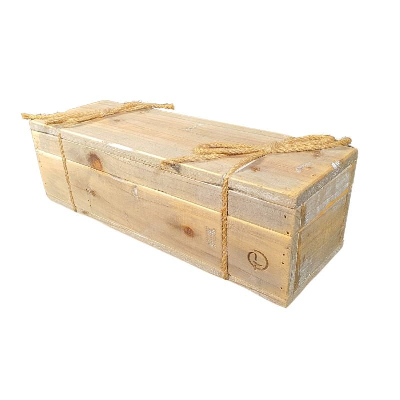 Deze kist heeft een zeer hoog deksel, zodat u bij het openen van de kist direct de fles ziet en deze gemakkelijk kunt uitnemen.